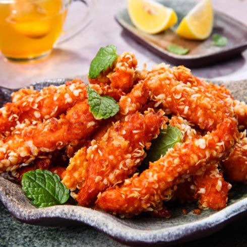 喜欢吃炸鸡柳么?曾经的炸鸡柳一度风靡炸鸡市场,走在任何大街小巷都可以看到人们手中的鸡柳。而现在的香辣鸡柳在原基础上进行创新后,也抓住了人们的味蕾。香辣鸡柳需选用新鲜鸡脯肉,每条鸡柳保证重量食材一致,裹上相同层次的鸡柳粉,放入油锅滚炸,标准操作时间,让鸡柳刚好熟透,呈现金灿灿的美食颜色。当你一口咬下去,酥脆的声音,伴着又香又辣的口感,让你回味无穷。